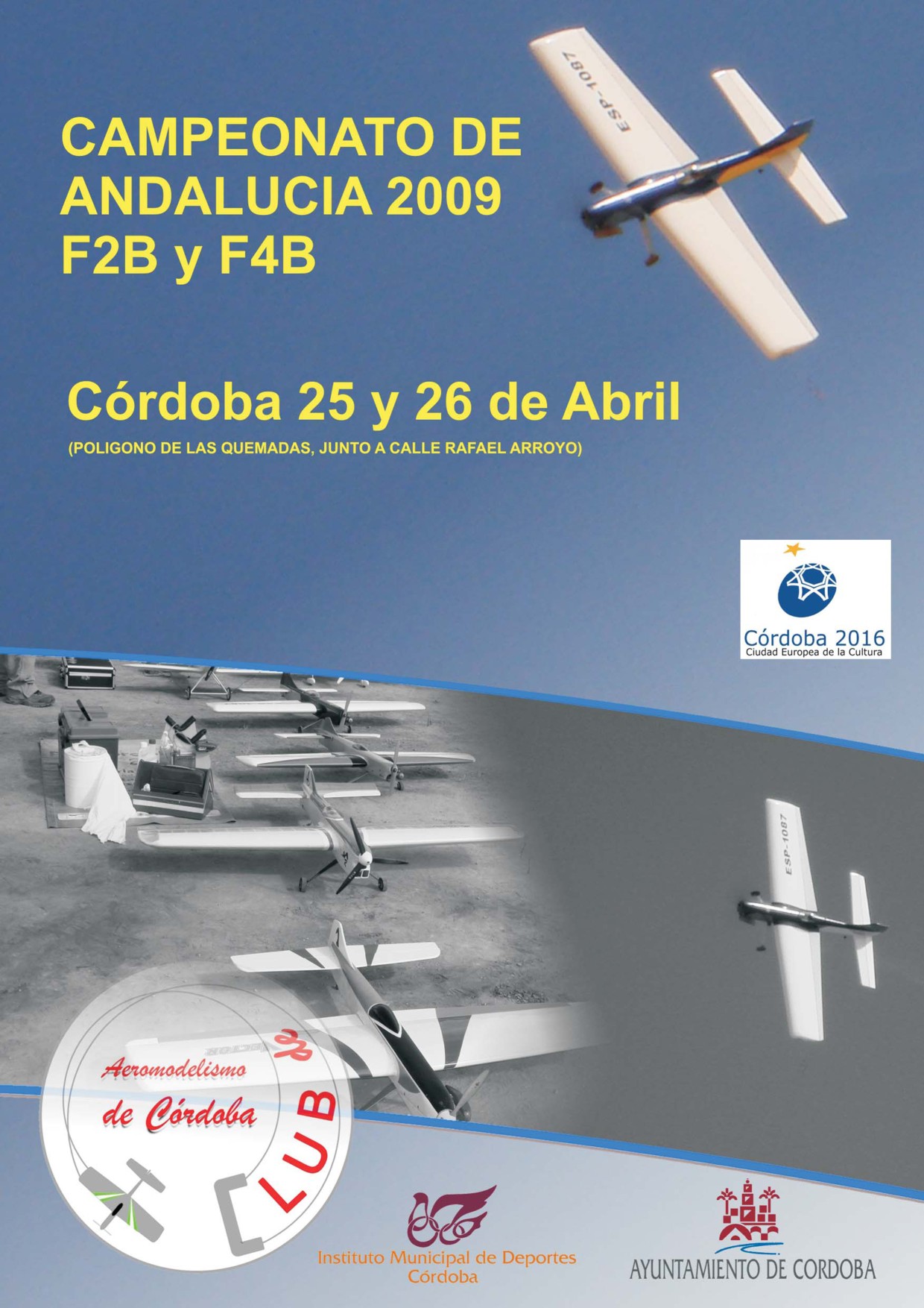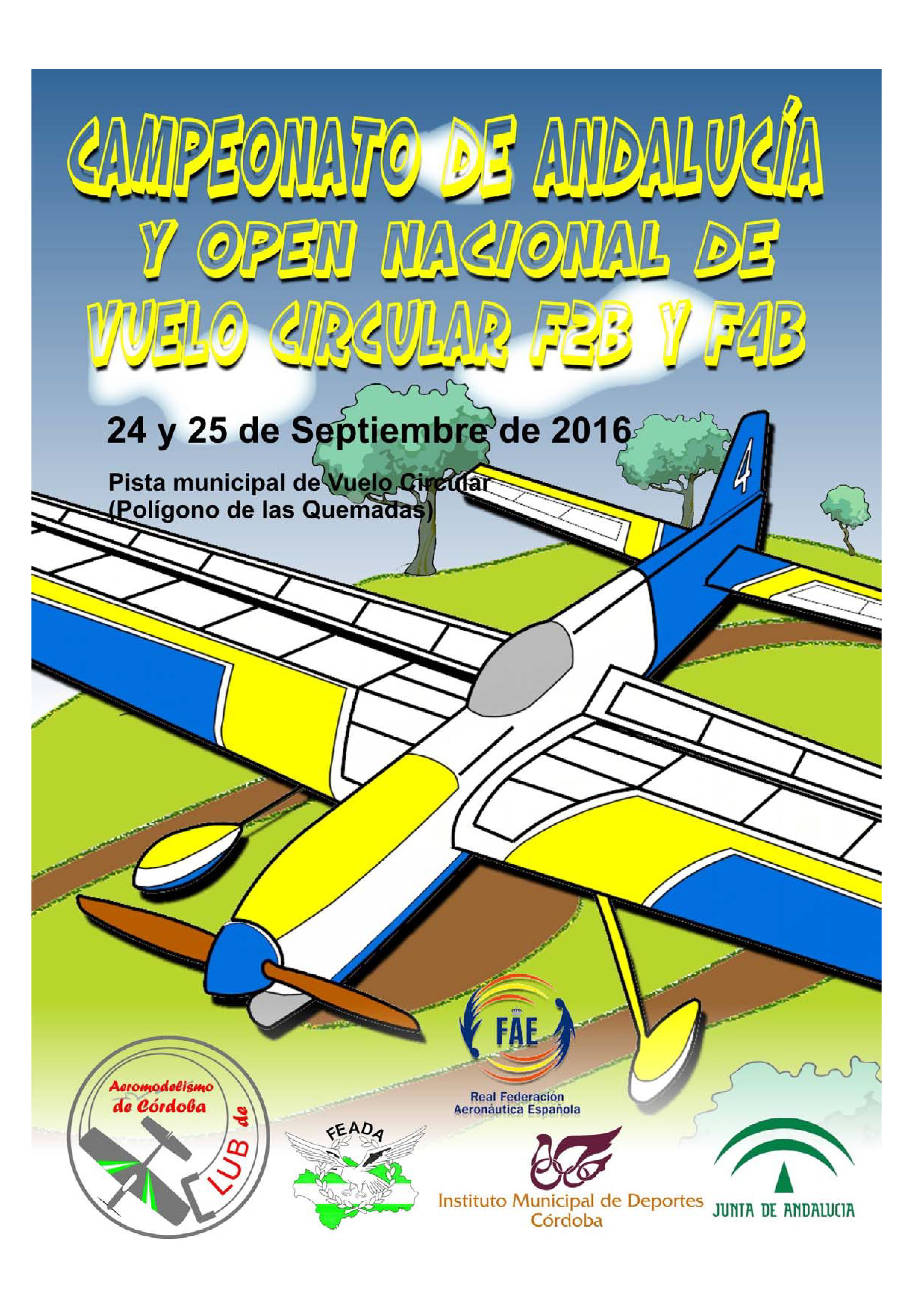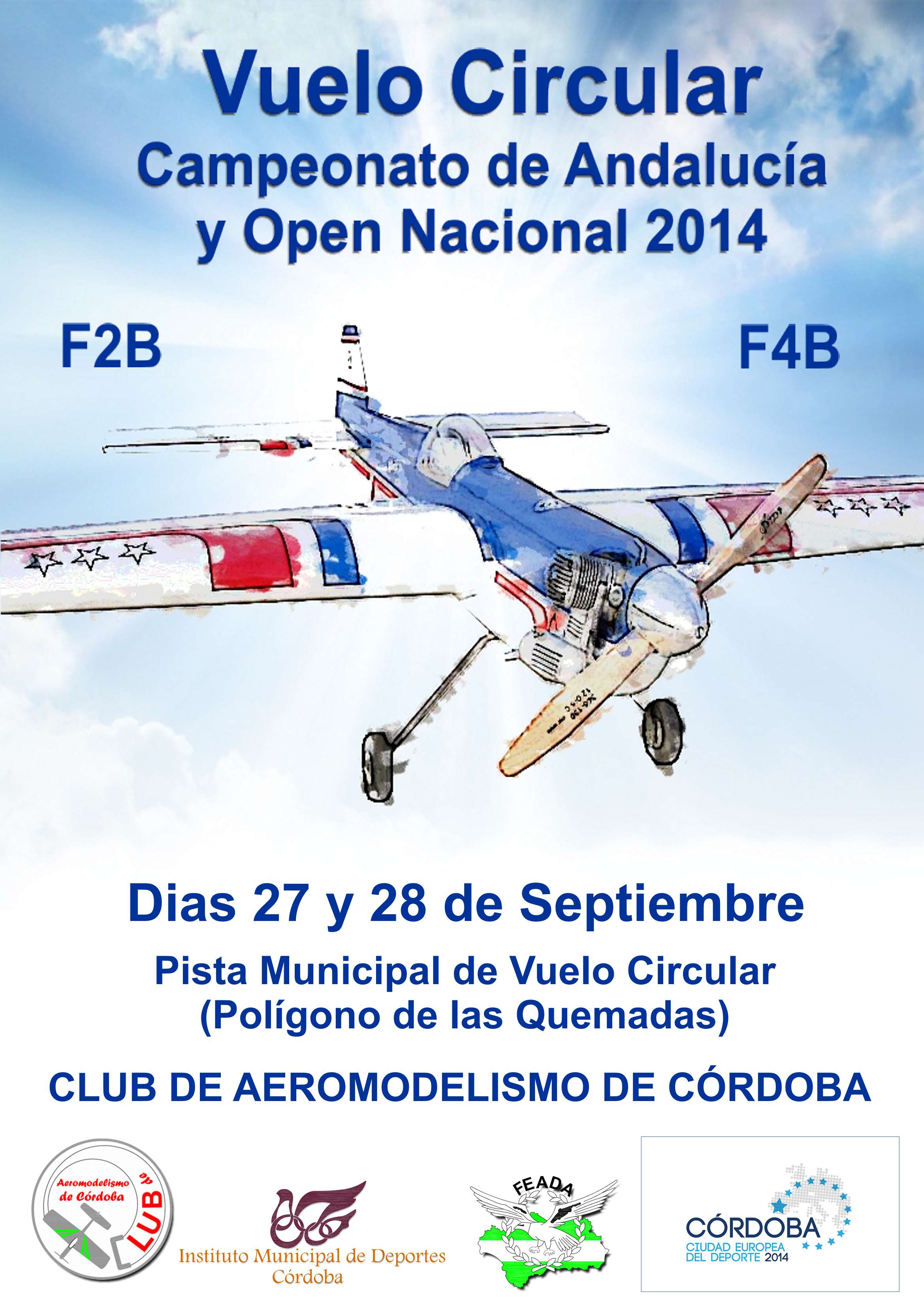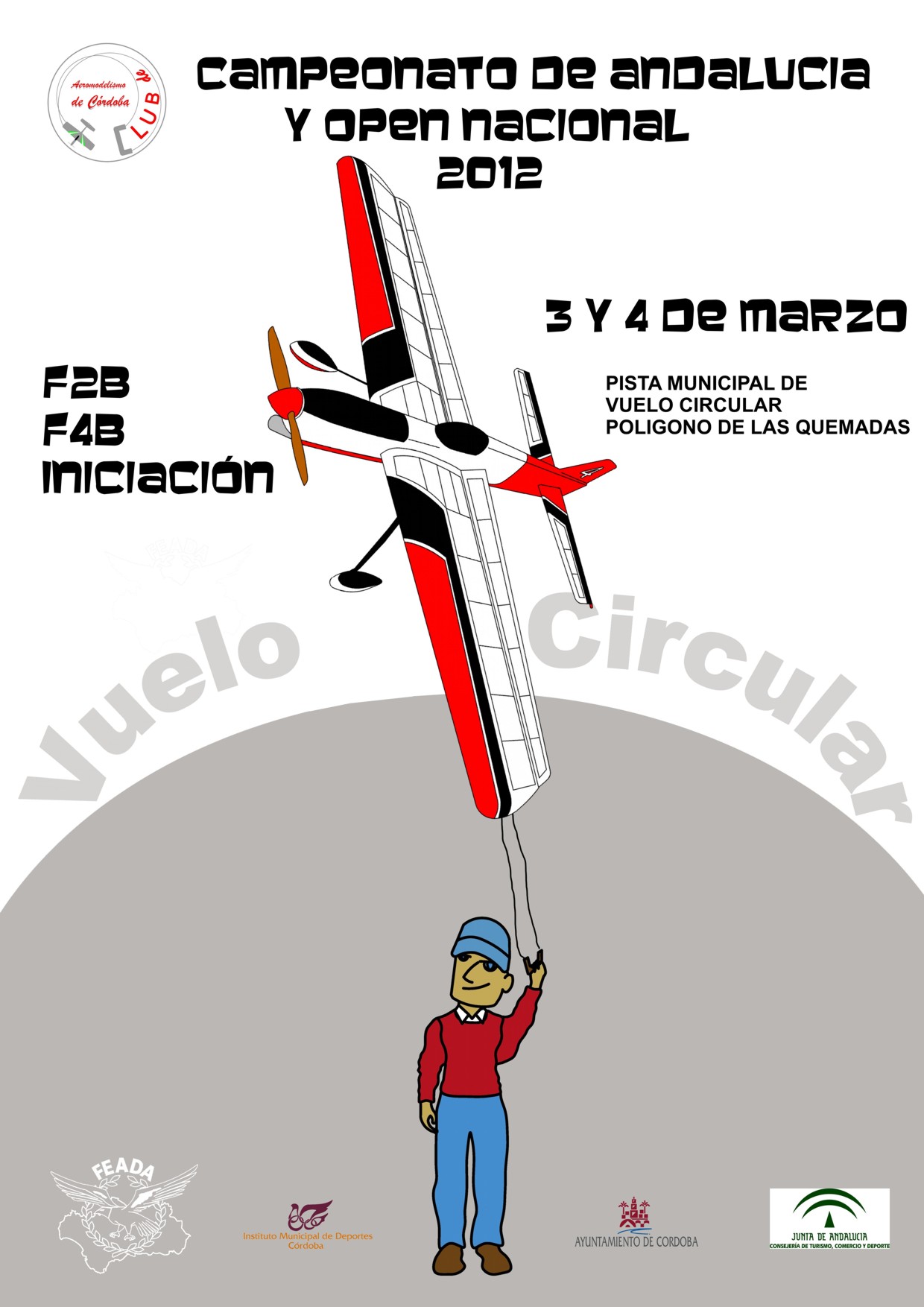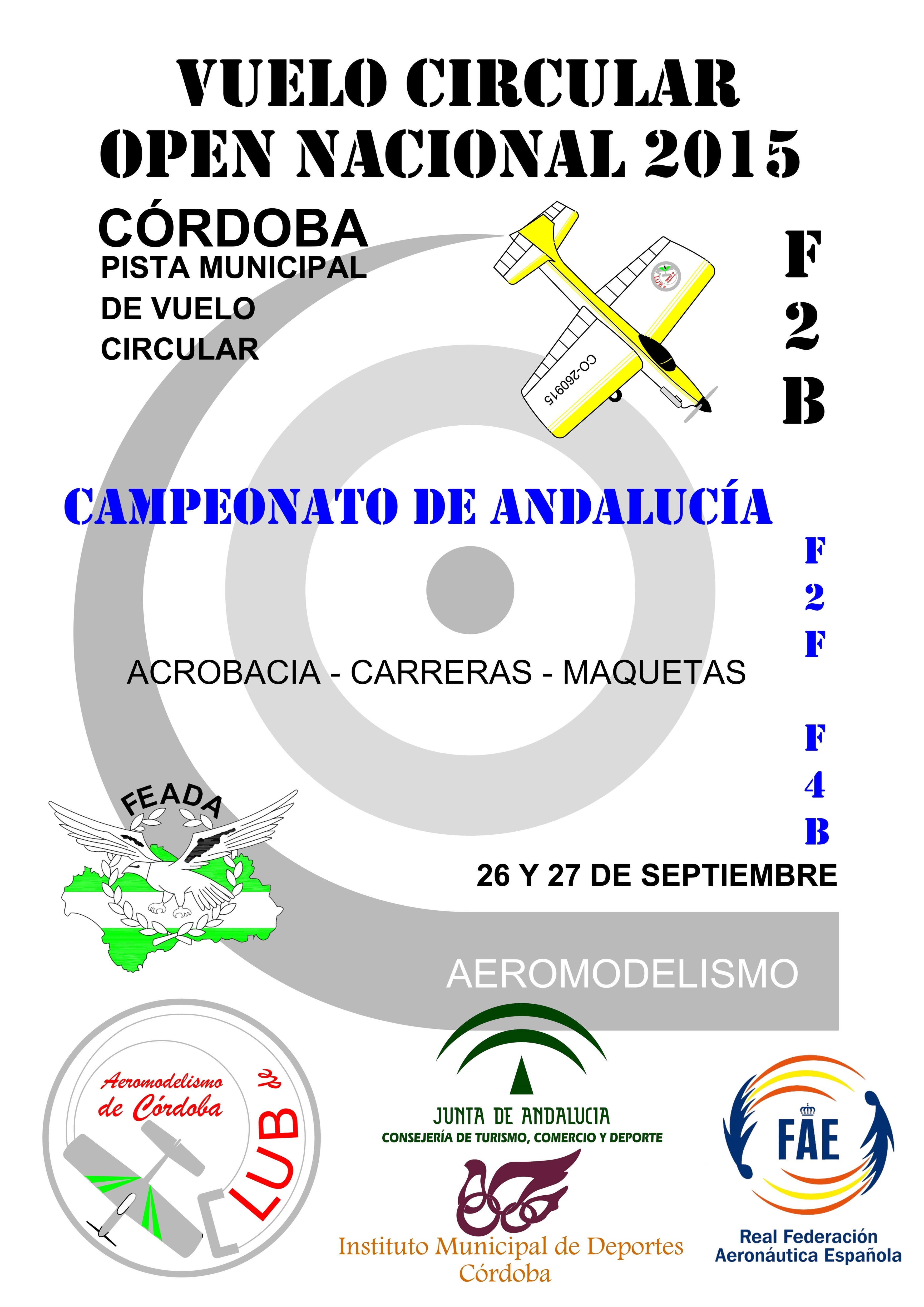 ![]() El Club de Aeromodelismo de Córdoba basa su actividad en la difusión del Vuelo Circular, aprendizaje de personas que se quieren incorporar a la práctica de este deporte y la competición. Desarrolla su actividad en la pista municipal de Vuelo Circular, que fue construída e inaugurada en el año 2009, con las aportaciones del Instituto Municipal de Deportes de Córdoba, el Área de Infraestructuras del Ayuntamiento de esta ciudad y el propio Club de Aeromodelismo de Córdoba. Entre sus actividades, podemos señalar, la difusión del Aeromodelismo colaborando en jornadas de promoción de este deporte. Varios de sus miembros, participan en competiciones por todo el territorio nacional, e incluso en eventos internacionales como el campeonato del mundo. En las instalaciones de córdoba, se celebran competiciones oficiales, como las que se relacionan a continuación.