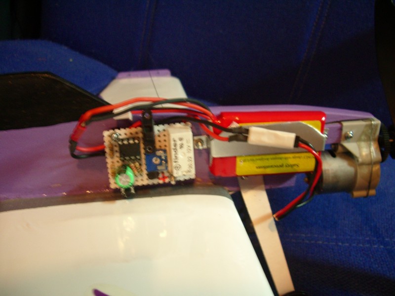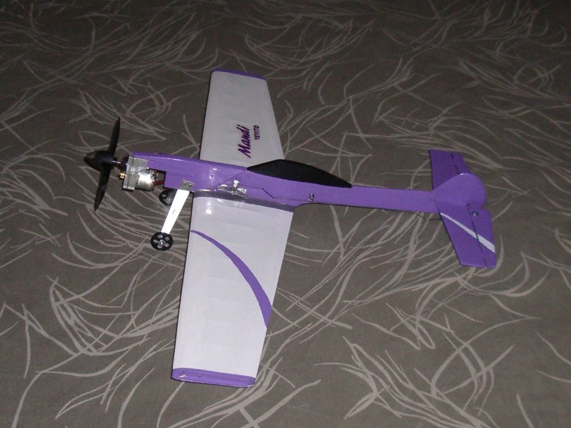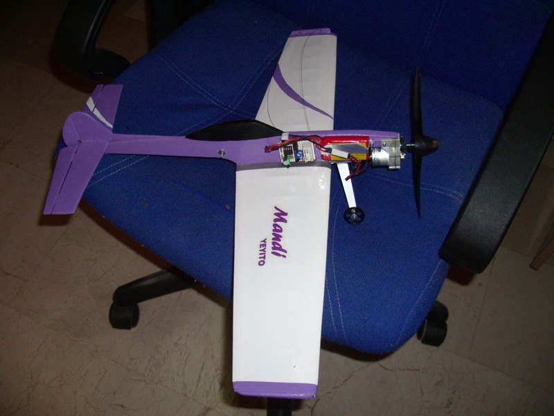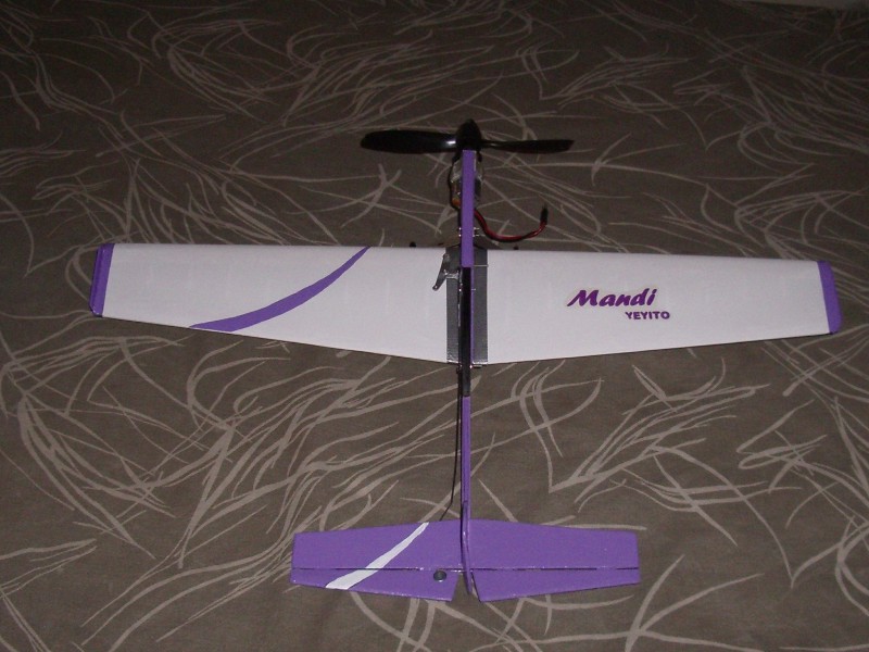 Modelo a escala reducida, con 600 mm. de envergadura del mitito Yeyito de Modelhob. Lleva motor de escobillas y temporizador casero. Para ver una foto en construcción pincha
